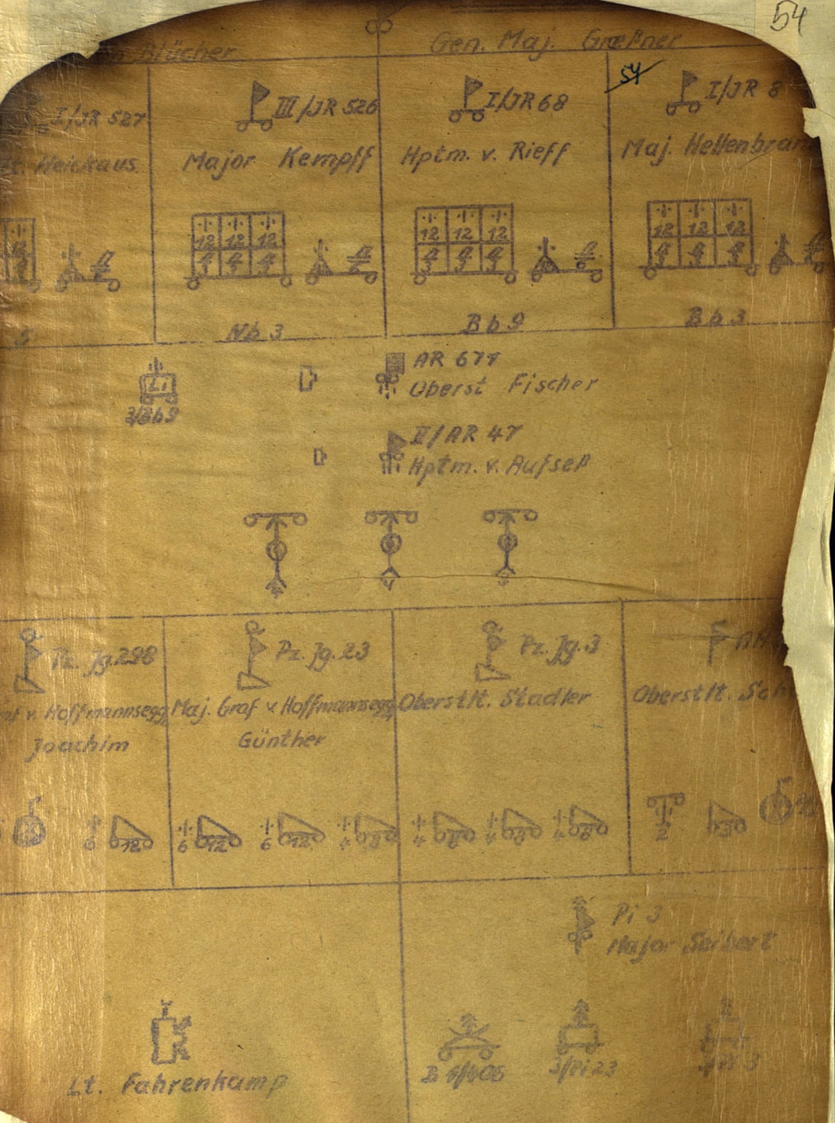 2 Satz Zub.u.Vorr.Sachen f.eine s.F.H.18 (besp.) H.Za.Ingolstadt für W.Kdo.III: 3 s.F.H.18(besp.) mit Protze u.Rohrwagen 3 Satz Zub.u.Vorr.Sachen f.eine s.F.H.18 (besp.) H.Za.Spandau an H.Za.Wien für W.Kdo.XVII: 4 s.F.H.25(t) mit Zub.u.Vorr.Sachen, einschl.Protze und Rohrwagen. Die noch im H.Za.Spandau vorhandenen 4 s.F.H.25(t) die für die 293.Inf.Div.vorgesehen waren, sind nicht nach Reganwurmlager, sondern an H.Za.Hannover für W.Kdo.XI abzugeben. Die breits bei der 293.Inf.Div. vorhandenen 4.s.F.H.25(t) sind an H.Za.Breslau für W.Kdo.VIII weiterzuleiten. H.Za.Magdeburg an H.Za.Spandau für W.Kdo.III: 9 s.F.H.18(besp.) mit Protze u.Rohrwagen 9 Satz Zub.u.Vorr.Sachen f.eine s.F.H.18 (besp.) 3 Satz Zub.u.Vorr.Sachen f.1 Battr.s.F.H.18(besp.) H.Za.Kassel an H.Za.Naumburg für W.Kdo.IV: 12 s.F.H.18(besp.) mit Protze u.Rohrwagen 12 Satz Zub.u.Vorr.Sachen f.eine s.F.H.18 (besp.) 3 Satz Zub.u.Vorr.Sachen f.1 Battr.s.F.H.18(besp.) Die fehlenden Rohrwagen sind von H.Za.Kassel beim H.Za.Magdeburg anzufordern und unmittelbar an H.Za.Naumburg zu senden. Fehlende Zubehörteile und Vorratssachen sind beim H.Za.Magdeburg anzufordern und von diesem unmittelbar an die bereitstellenden H.Za. zu senden. Der Versand der Geschütze hat sofort zu erfolgen. Noch in der Instandetzung befindliche Geschütze sind ab 15.3.40 umgehend nachzuliefern. Beob.Wg.(Af.12) und s.Mun.Wagen o2(Af.5) bleiben vorläufig Lücke. Dafür sind landesübl.Fahrzeuge nach Möglichkeit kräftig gebaute Kastenwagen- einzustellen. III. Beobachtungs- und Vermessungsgerät. Das Gerät der Stoffgl.27,44 und 54 wird zugeführt. Ausstattung mit D.F.6x30 50% Marschkompaß (mit Träger od.vereinf.) 50% Deckungswinkelmesser 50% Richtkreis 31 der Felda 75% S.F.14 Z mit Gi.oder 09 75% Vorläufig Lücke: Planunterlage 1100x1170 Kartenbrett 34 Nachrichtengerät: Die Ausstattung mit Nachrichtengerät mit Ausnahme des Funkgeräts hat von den territorialen H.Za.sofort zu erfolgen. Fehlendes Einzelgerät ist beim H.Za.(Nachr.) anzufordern. Die Abgabe des Funkgeräts ist vom H.Za.(Nachr.) bis zum 15.4.1940 durchzuführen. Pioniergerät: Ausstattung mit kurzem Spaten und Tragetaschen für kurze Spaten nur bis zu 50% des nach K.A.N.zuständigen Solls. Es bleiben Lücke: Klauenbeile an Fahrzeugen kl.Drahtscheren an Fahrzeugen Masch.Satz V(=) etwa 800 Watt als Kraft- u.Lichtquelle nach K.A.N.1309 v.3.1.40. Sanitätssonderfahrzeuge: Für fehlende Krankenwagen (Sf.2) sind landesübl.Fahrzeuge bereitzustellen, die im Benehmen mit den Wehrkreisärzten zum behelfsmässigen Krankentransport herzurichten sind. Munition: a) Bereitstellung der Muntition für s.F.H.18 durch zuständiges Fz.Kdo. b) Munition für s.F.H.25(t) ist gem.Vorg.2.) Abschn.B Ziffer 3.)a) mit den Geschützen von W.Kdo.II,III u.IV abzugeben. Fz.Kdo.XVII entnimmt die Munition aus den Beständen der H.Ma.Groß Mittel. Munitionsgeräte werden mit dem Gerät, Schußtafeln gesondert durch Chef H Rüst u BdE AHA Fz In zugewiesen. III. Versandanschriften sind den abgebenden Fz.Dienststellen, sofern nicht das zuständige H.Za., des aufstellenden Fz.Kdo. in Frage kommt, umgehend durch Fernschreiben mitzuteilen. IV. Chef H Rüst u BdE AHA/Fz In sind vorzulegen: a) zum 5.4.40 Nachweis des an der Ausstattung der Artl.Einheiten fehlenden Geräts getrennt nach Gerätklassen. b) zum 15.4.1940 Vollzugsmeldung (nur fpr Artl.Einheiten). c) zum 15.4.1940 Vollzugsmeldung und Nachweis des an der Ausstattung für San.Einheiten fehlenden Geräts. |