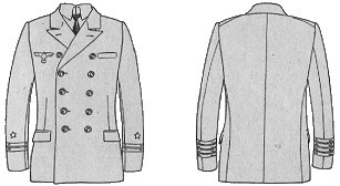 | The blue jackett for Portepee-Unteroffiziere and Wehrmacht-officials without officer-rank. Buttons golden for Portepee-Unteroffiziere, silver for officials. National-insignia in gold for Portepee-Unteroffiziere, silver for officials. Laufbahnabzeichen just for Fähnriche and Oberfähnriche. | The white jackett for Portepee-Unteroffiziere and Wehrmacht officials without officer-rank. Buttons as on the blue jackett.The national-insignia removable in white or golden metal. |
