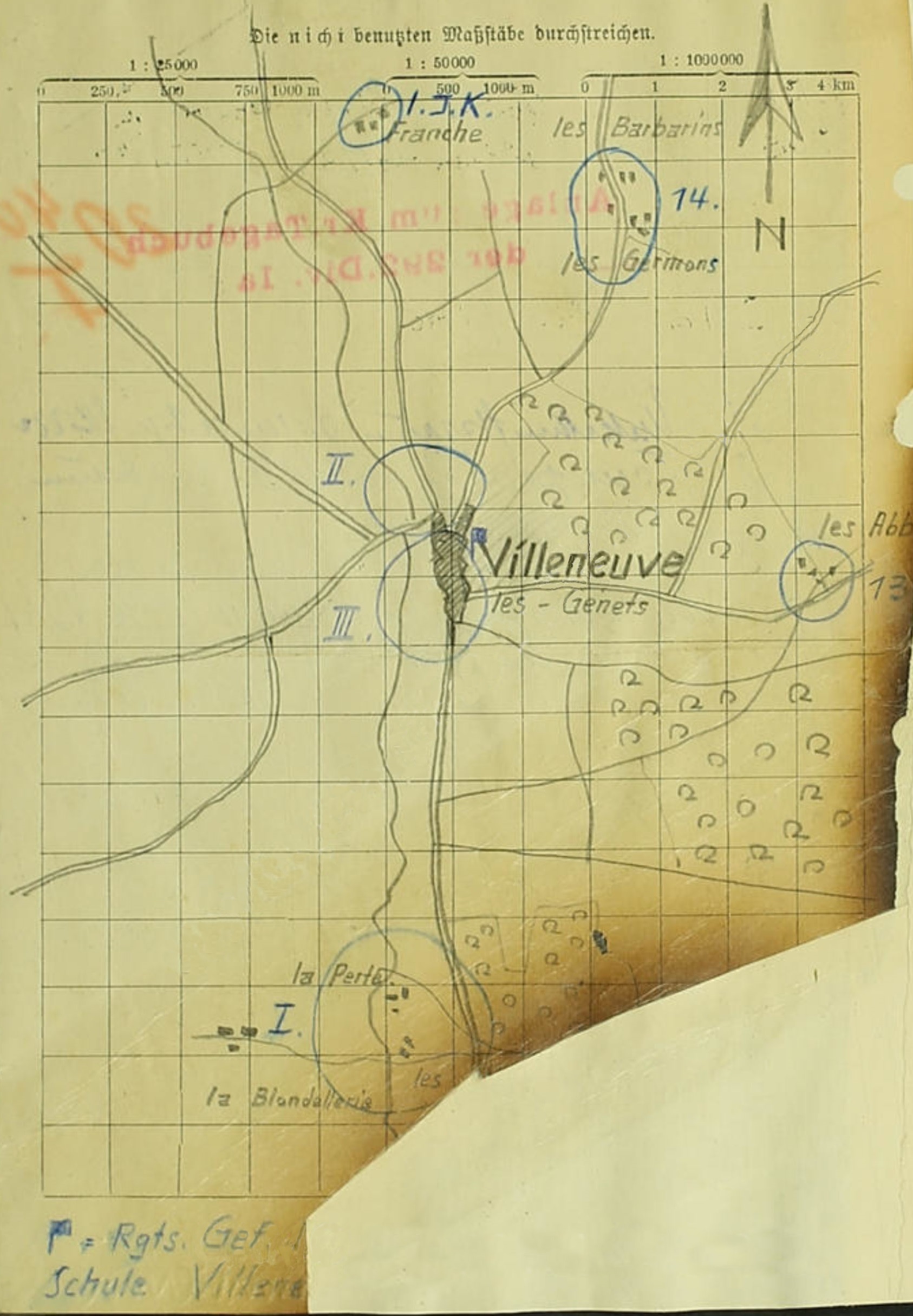 I.R.508 an Div.292 18.6.40, 09.00 Uhr: 09.05 Vorausabt.angetreten. I.R.508 an Div.292 18.6.40, 11.15 Uhr: Anfang der Marschgruppe 11.15 Perreux erreicht. I.R.507 an Div.292 18.6.40, 13.40 Uhr: Rgt. hat 13.30 Uhr Villeneuve erreicht. Rast bis 16.00 Uhr. Voraus an 292.Inf.Div., 18.6.40, 13.50 Uhr: Spähtrupp zwischen St.Firmin und Chatillon ohne Feindberührung übergesetzt. Erkundung Westufer noch im Gange. Bilde auf Korpsbefehl an gleicher Stelle Brückenkopf. I.R.508 an 292.Inf.Div., 18.6.40, 14.15 Uhr. Nach beendeter Rast westlich Grand Champ 15.00 Weitermarsch. Voraus an 292.Inf.Div., 18.6.40, 15.00 Uhr: Meldung durch Kradmelder an Armee. Fliegermeldung 12.45 LKW Kolonne Vailly. 9 Fahrzeuge. Anfang im Ort Richtung La Capelle. Sonst nur Einzelfahrzeuge. 12.50 um La Chapelle alle Straßen belegt. -unleserlich- LKW, 14 Omnibusse, bespannte -unleserlich- und 4 Kompanien -unleserlich- westl.Richtung. -mehrere Zeilen verbrannt- Voraus an 292.Inf.Div., 18.6.40, 19.18 Uhr: Brückenkolonne 11 und 15 an Brückenkopf eingetroffen. Voraus an 292.Inf.Div., 18.6.40, 19.25 Uhr: Chatillon feindfrei. -unleserlich- in Brückenkopf eingezogen. Voraus an 292.Inf.Div., 18.6.40, 19.35 Uhr: Laut Flakoffizier ein Zug zum Brückenschutz zu schwach. Erbitte Einsatz eines zweiten Zuges. Umgehend Antwort. Voraus an 292.Inf.Div., 18.6.40, 20.00 Uhr: Brückenkopf gebildet von Wegegabel 300 mtr.südwestl. Pkt.187 bis südwestl.Rand Chatillon. Teile zur Bildung Brückenkopf nordwestl. Pkt.187 -unleserlich- Brückenkopf 96 -unleserlich- im Anmarsch. Voraus an 292.Inf.Div., 18.6.40, 20.35 Uhr: Oberst Scherer soeben eingetroffen. I.R.508, Gef.St.Villeneuve Schule, an 292.Inf.Div., 18.6.40, --- Uhr. 1. Unterkunftsraum s.umseitige Skzze. 2. Truppe hat um 19.30 den Raum erreicht. 3. Durch Radfahrzug während des Vormarsches Verbindung mit 96.ID aufgenommen. a) Div.Gef.St. bis 16.00 Uhr in Joigny. b) IR.287 marschierte um 1400 durch Villers St.Beuris nach Mezilles. c) Heute erreichte vordere Linie wahrscheinlich nordostwärts Le Loing Fluss. -mehrere Zeilen verbrannt- Voraus an 292.Inf.Div., 18.6.40, 21.00 Uhr: Zehn Schützen im Zurückgehen auf Straße 130. Les Albides. Batterie 4 Geschütze bespannt geht in Richtung Argent. -unleserlich-straße fast unbelegt. 13.15 LKW Kolonne 12 Fahrzeuge stehen bei -unleserlich- Nachbarabschnitt Argent - -unleserlich- in Ordnung. -mehrere Zeilen verbrannt. Voraus an 292.Inf.Div., 18.6.40, 21.41 Uhr: Pion.Komp.196 und Inf.Rgt.507 außer Kdr. und Radfahrzug noch nicht eingetroffen. -mehrere Zeilen unleserlich- Voraus an 292.Inf.Div., 18.6.40, 22.22 Uhr: Radfahrzug übergegangen. 1.Komp. im Übersetzen. Verbindung rechts aufgenommen. Brücke im Bau. Alles in Ordnung. Voraus an 292.Inf.Div., 18.6.40, 23.15 Uhr: Cernoy feindfrei. |