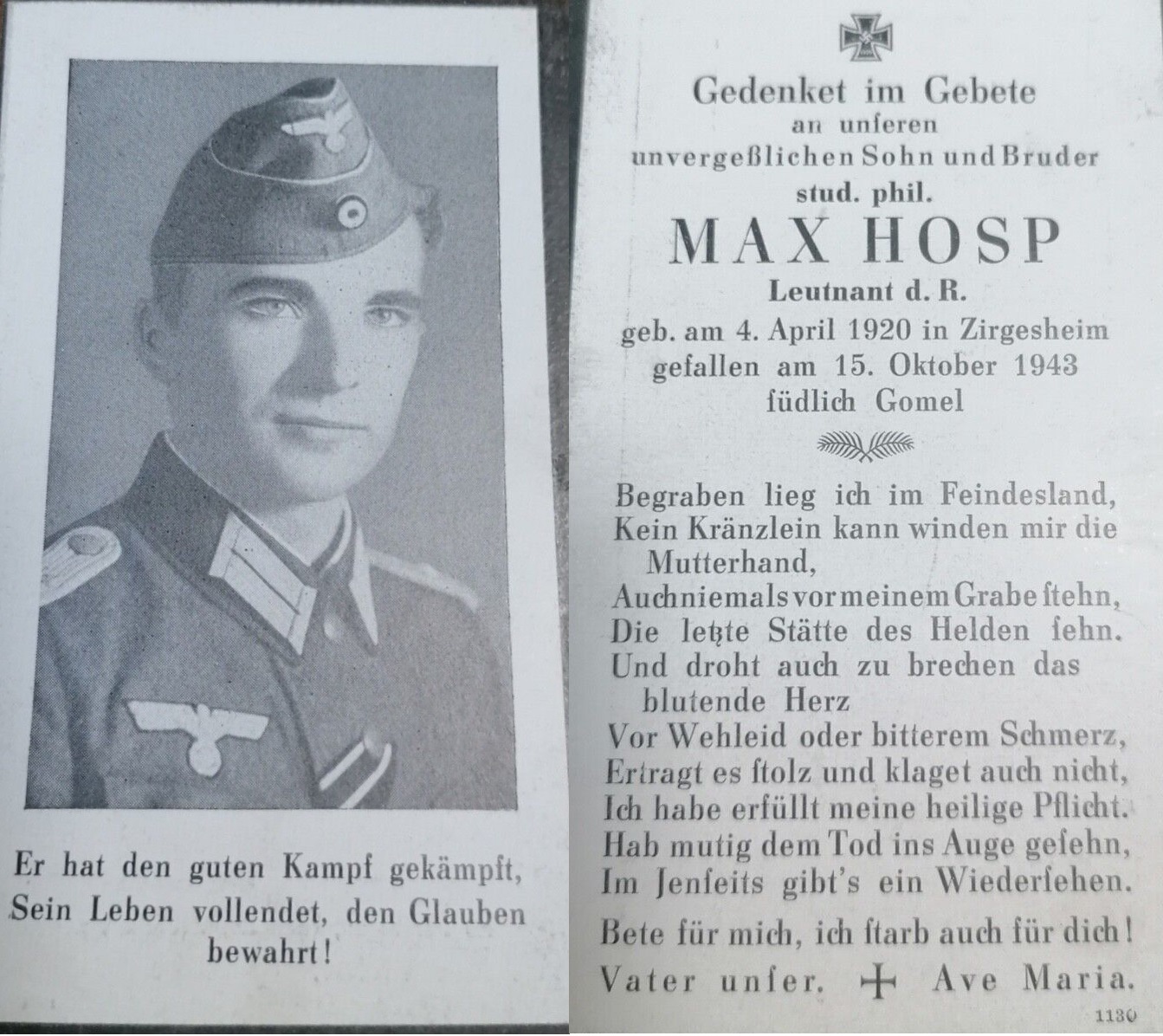 | Hosp Maximilian | 15.10.1943 gefallen I.G.Kopf, Gluschez (Lt.); | |||