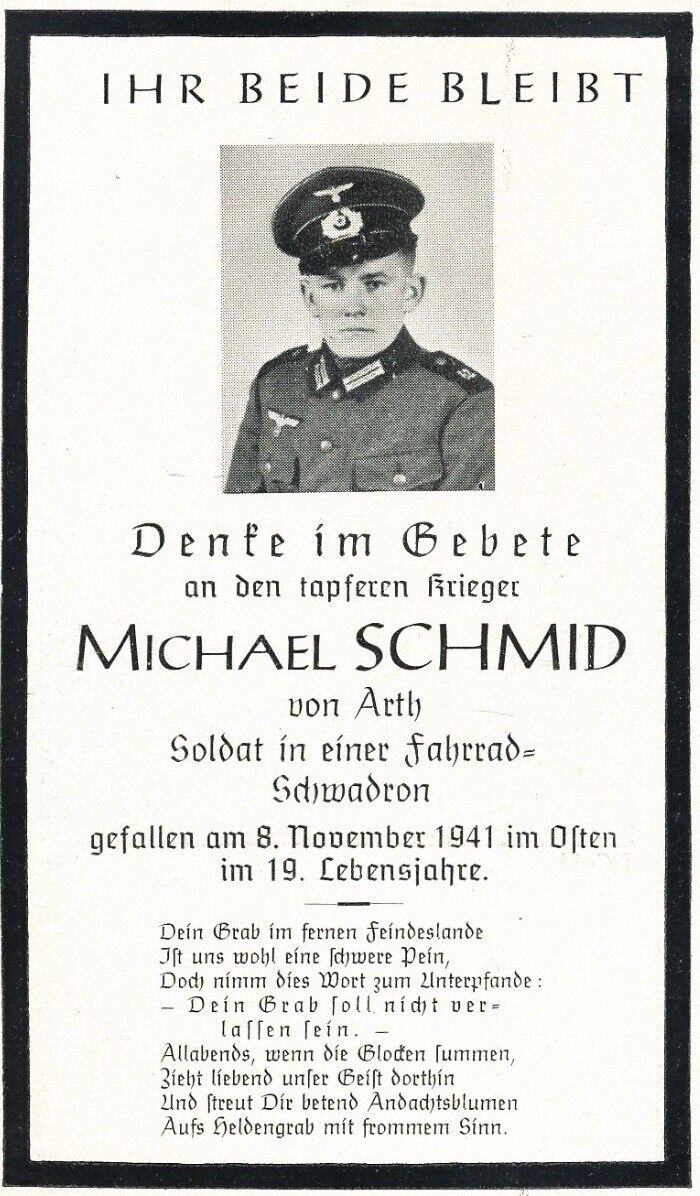 | Schmid Michael | 8.11.41 gefallen I.G.K. Radschino (Schtz.); | |||