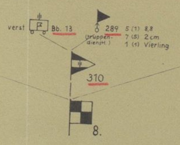 8.Armee Stand 26.9.1944 unter H.Gr.Süd. Anlage zu Ob.Kdo.H.Gr.Süd Ia/Art Nr.3715/44 g.Kdo. v.26.9.44 Harko 310 Stg.Brig.325 (in Auffrischung), 325 (in Auffrischung) H.Flak-Art.Abt.(bdstg.)289 verst.Wetterzug Beob.Abt.(mot) 13 Gruppe Schopper. Arko ? Art.Brig.Stab 959 Beob.Abt.(mot) 32 (in Zuführung aus Auffrischung) XVII.Armeekorps. Arko 7 |