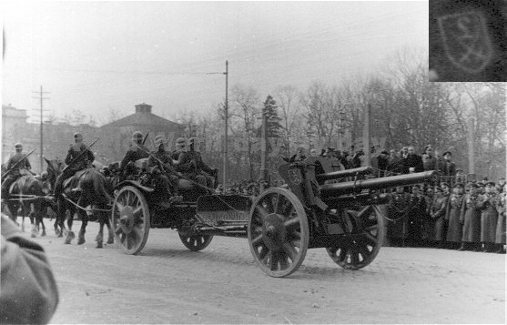 The emblem of the division on a Feldhaubitze. The "L" probably symbolizes the use as "Lehrtruppe" in Romania.
