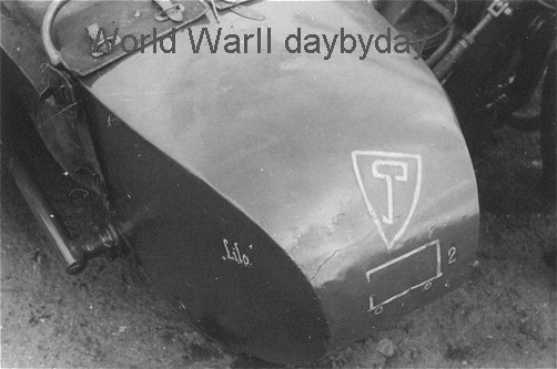 The key symbol and the tactical marking of 2./Inf.Rgt.(mot) on a sidecar. The name "Lilo" on the side most likely refers to the girlfriend of one of the crewmembers.