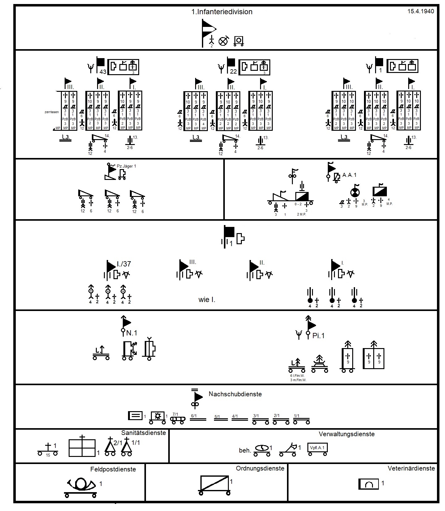 | Gliederungen 1.Infanteriedivision |