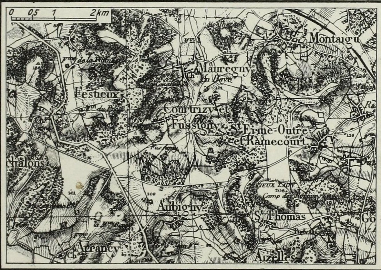 erkannt sind. Das Überschreiten der Waldhöhe südl.Montaigu bietet wegen der