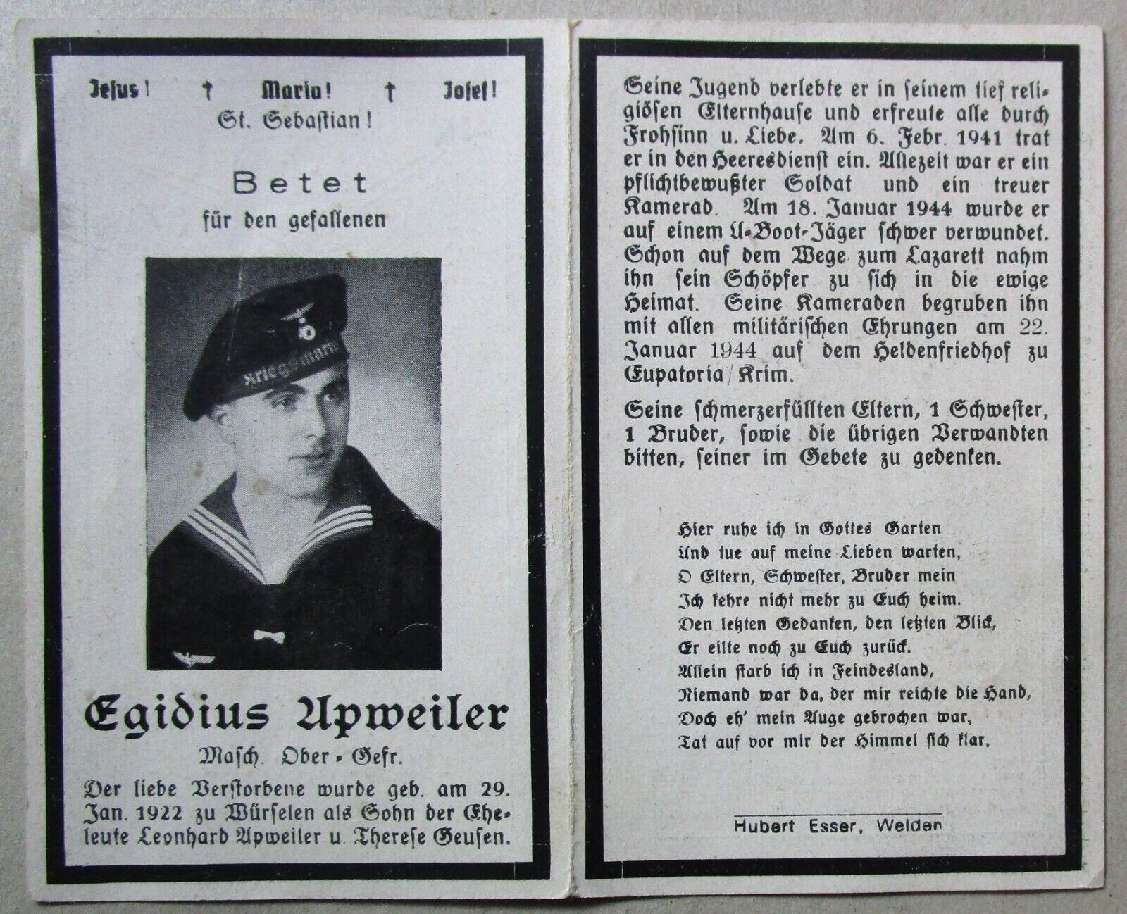18.1.44 gefallen bei Kap Tachankut, Grablage Frdhf.Eupatoria (Masch.Obgfr.);