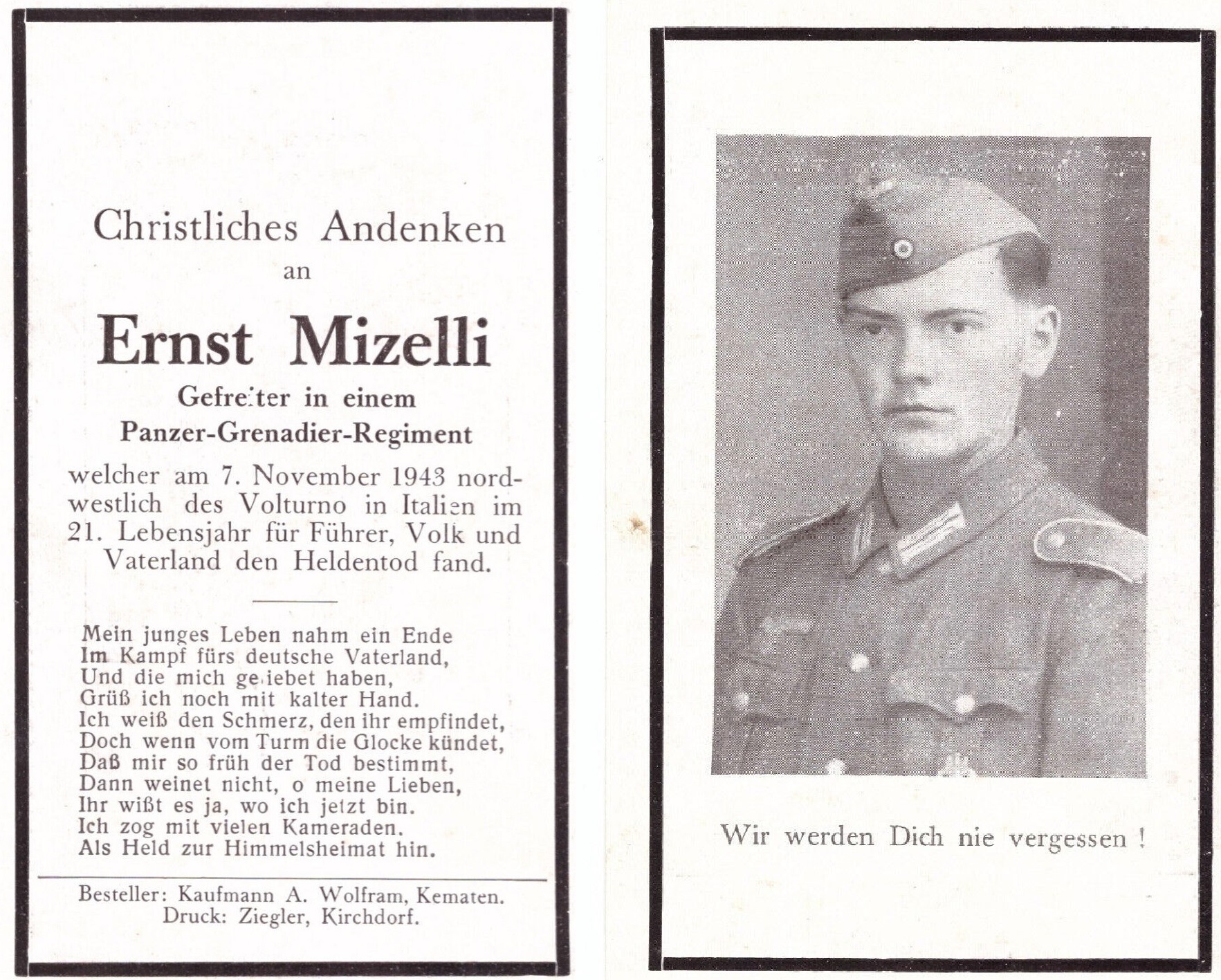 | Mizelli Ernst | 7.11.43 gefallen Cassino-Stellung, A.G. (Gfr.); | |||