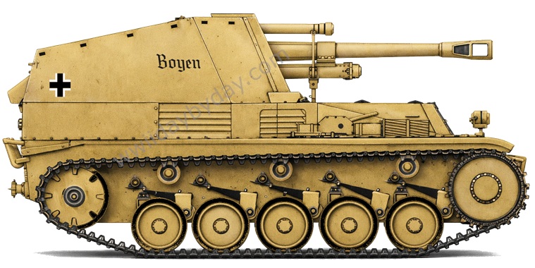Einheit: unbekannt Bedeutung: unbekannt Verwendungszeitraum: unbekannt Bestätigung: - Farbe: - ![]() Ein Sd.Kfz.124 der Waffen-SS mit der Aufschrift "Boyen" die sich vermutlich auf General Hermann von Boyen (1771–1848) bezieht. |