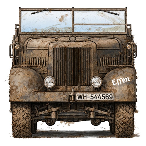 Einheit: unbekannt Bedeutung: unbekannt Verwendungszeitraum: unbekannt Bestätigung: - Farbe: - ![]() Ein Sd.Kfz.9 mit dem gothischen Schriftzug "Essen" am linken Kotflügel |