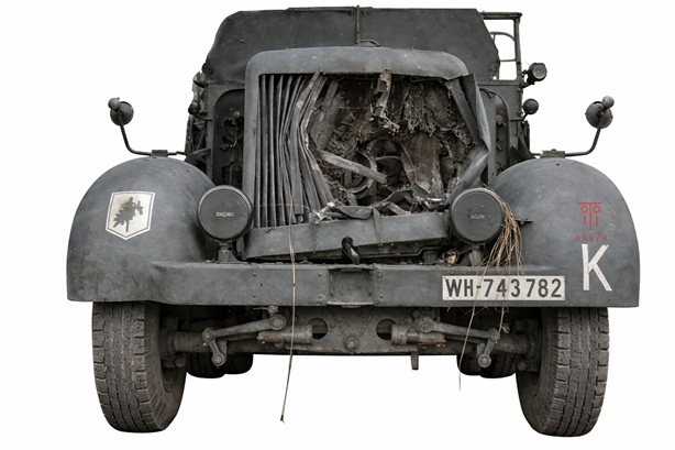 ![]() beschädigtes Sd.Kfz.7 der Panzergruppe 1 bei Dubno oder Sokal im Juni 1941. Am linken Kotflügel takt.Zeichen Art.mot. mit einer "7" erkennbar. Zu dieser Zeit der Panzergruppe 1 unterstellten s.Art. Einheiten waren: 21cmMörs.Abt.(mot) 732, 777, 607, 735, 15cmKanAbt.(mot)731 |